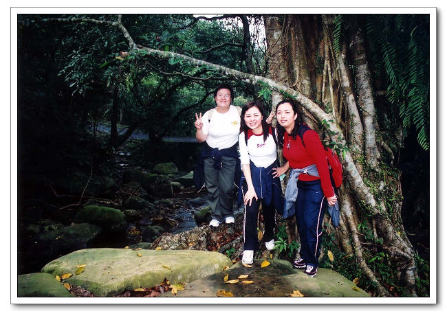 古道因年代久遠而湮沒於荒煙蔓草中,步行所經之處闊葉林木蒼鬱,流水淙淙