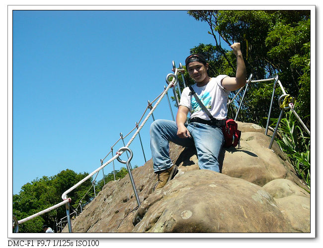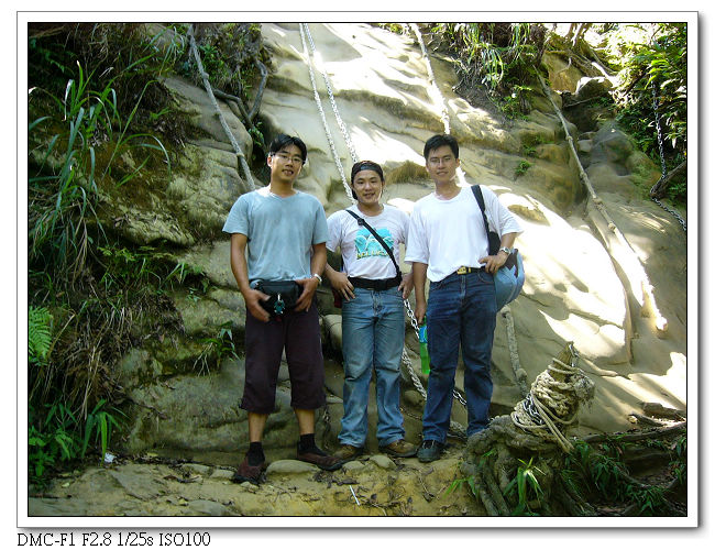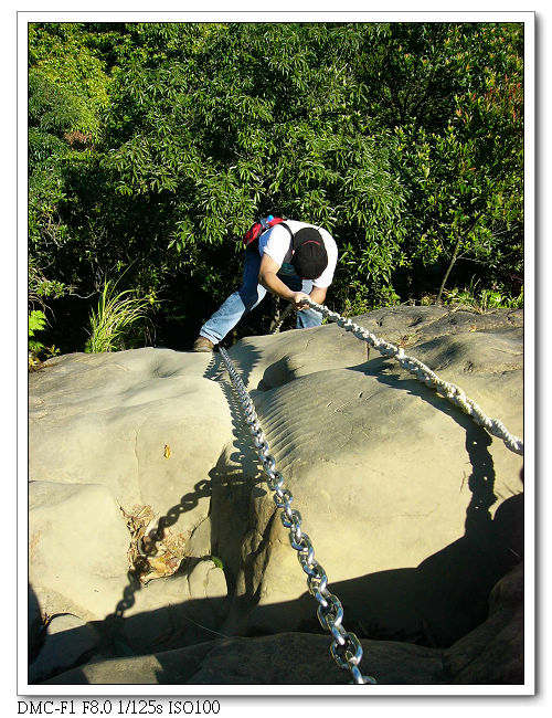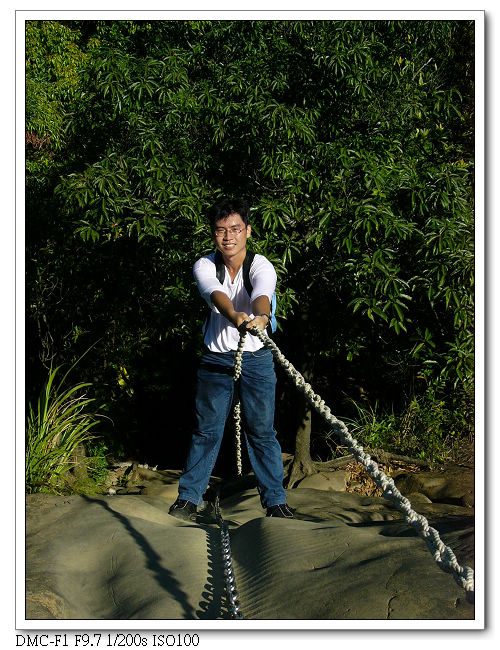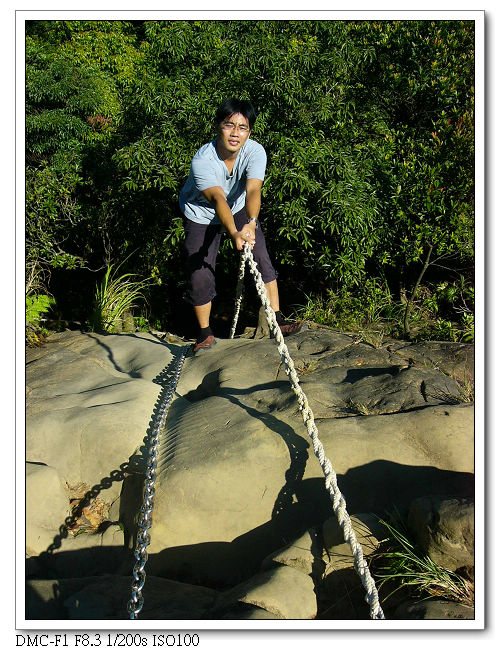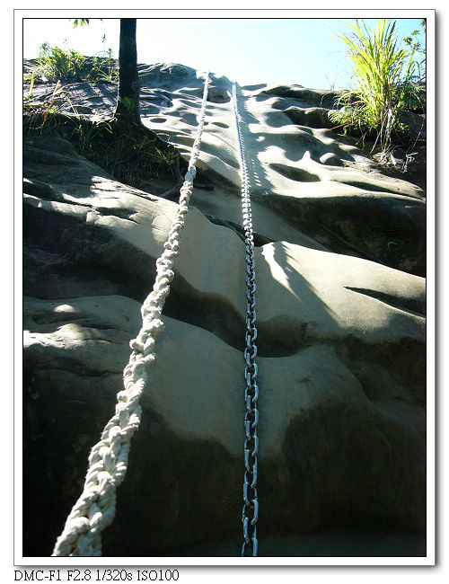 精華區,將近垂直的峭壁需拉緊繩索緩慢往下。