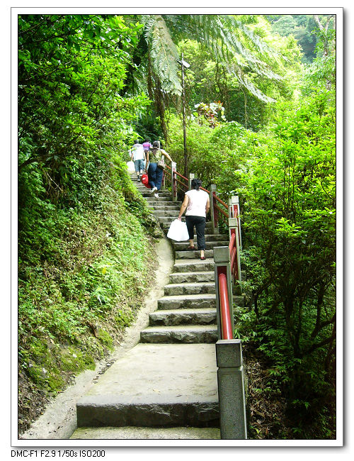 登山步道沿著瀑布河流走,感覺很清涼。