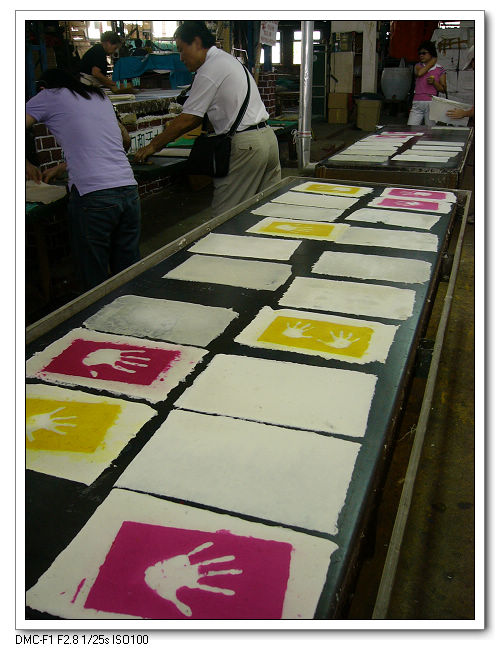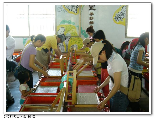 烘紙-一疊疊壓榨後的紙形成像豆腐的形態,再來就是烘焙成紙,感覺像在做潤餅皮。