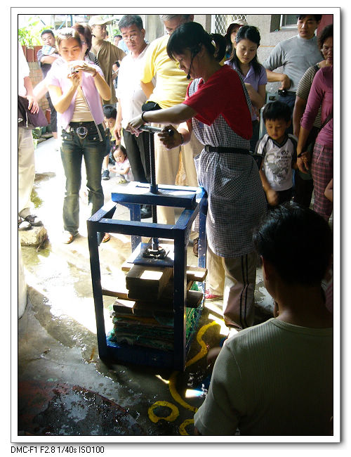 壓紙-紙漿經過抄紙形成紙的形態,再來就是將水份壓榨去除。
