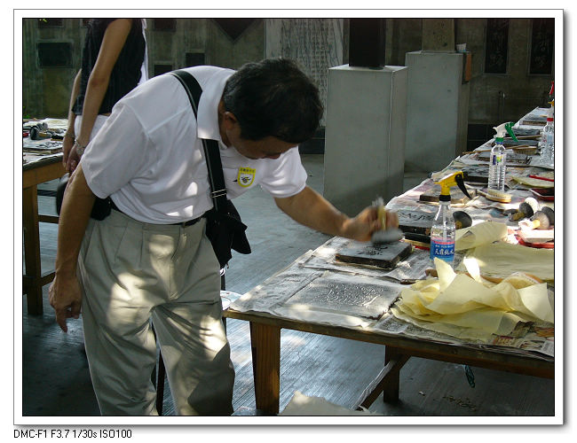 拓印-選自己喜歡的圖案再把紙放在上面噴濕,用印泥在輕輕印上色彩。