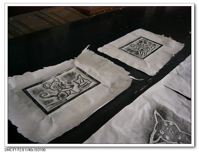 在紙上拓印好了圖案,再拿到烘紙鋼板上烘乾一會兒。