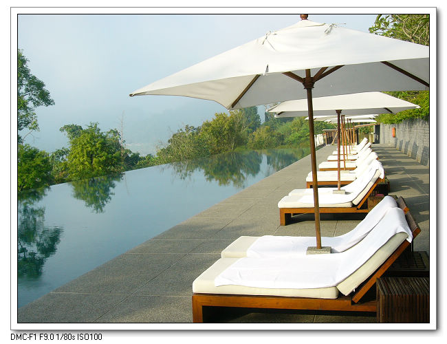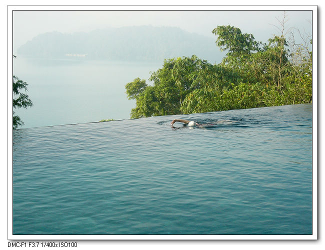 戶外溫水游泳池,長60公尺、寬8公尺,是涵碧樓最膾炙人口的場景之一。