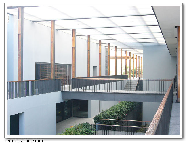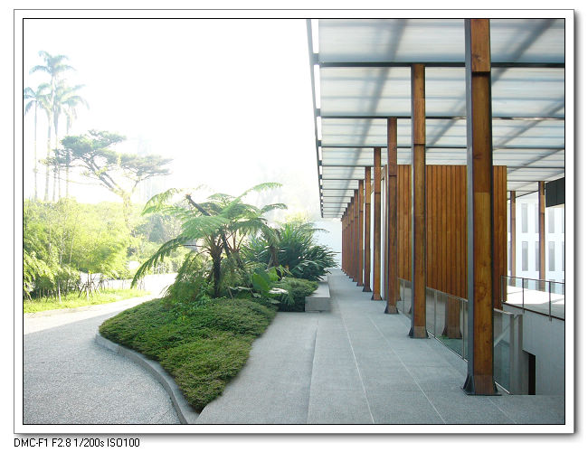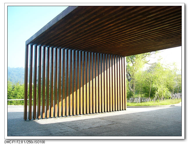 由木頭、石頭、玻璃和鐵等四大建材所構成,「Ongoing Style」之建築形式。