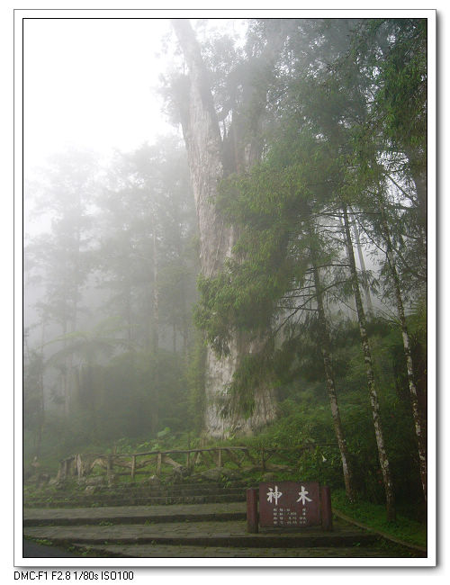 溪頭神木,已有2,800多年的高齡,高46公尺、合圍16公尺,是活的紅檜巨木,樹幹中間因菌侵蝕而呈中空狀態。