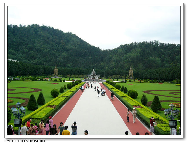 花園內各式噴泉、如茵的綠草、千嬌百媚圖案形鮮花,充分地展現歐式宮廷花園的典雅華麗。
