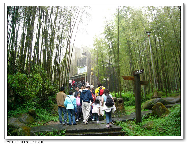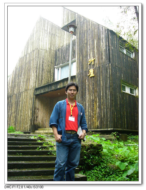 溪頭竹廬-幽靜的孟宗竹林裡,座落著一棟竹林裝潢的建築物。