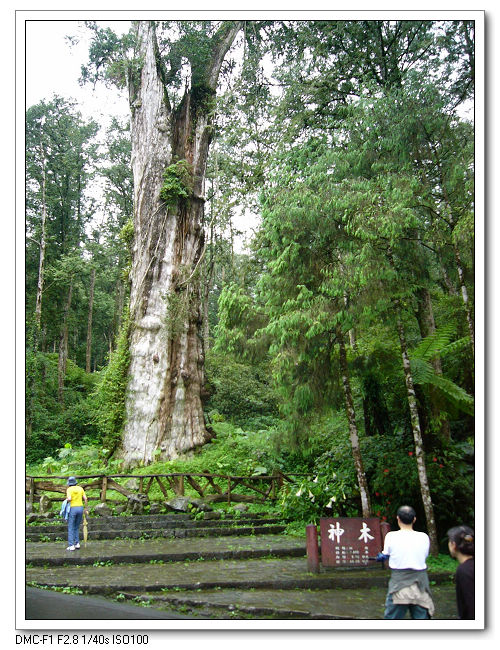 溪頭神木,已有2,800多年的高齡,高46公尺、合圍16公尺,是活的紅檜巨木。
