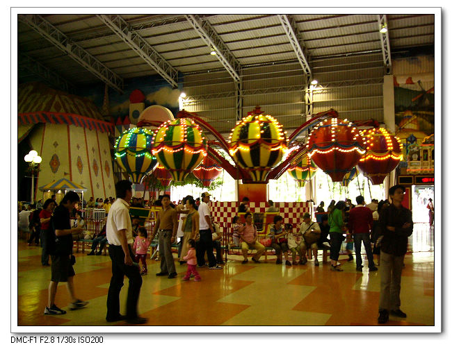 熱氣球-燈光閃爍的七彩熱氣球座艙,其動作溫和,適合家庭同乘。