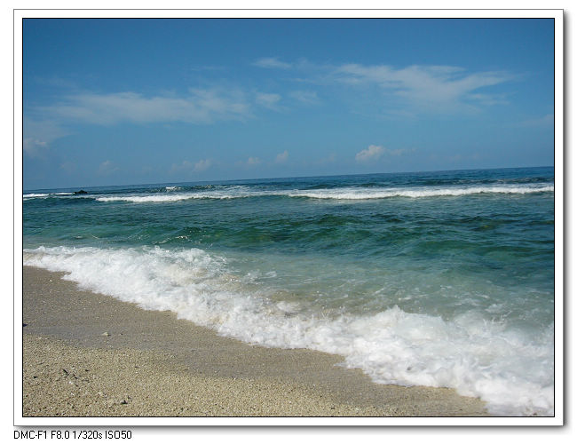 燕子洞外的沙灘,雪白潔淨,與碧海相互呼應,受大雨沖刷,形成特殊灘地。