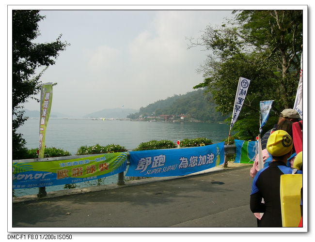 看到朝霧碼頭了,即將下水囉~游到對岸的德化碼頭,全長3.3公里。