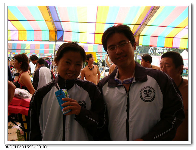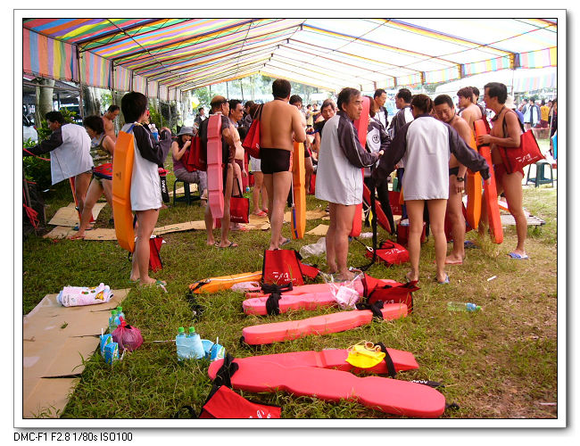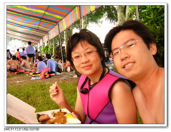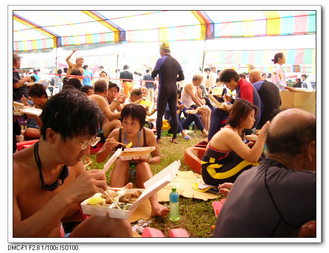 經過2小時10分鐘,終於游上岸了,大家首先做的事就是吃便當~