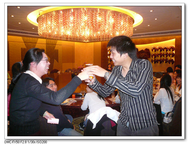 休息仍不忘和老闆敬酒。