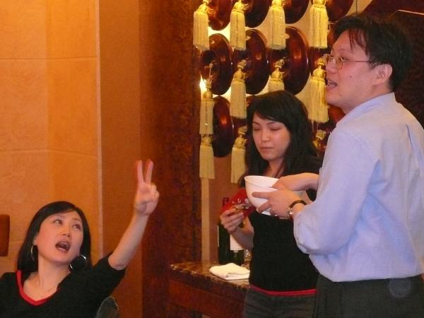 小邱拿出看家本領~拱酒。