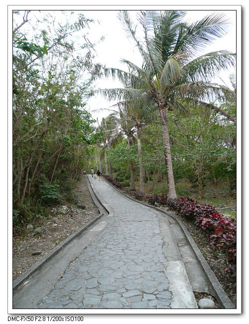 每隔一百公尺處,另有彩色瓷磚拼成圖案,美化路面並標示里程數。