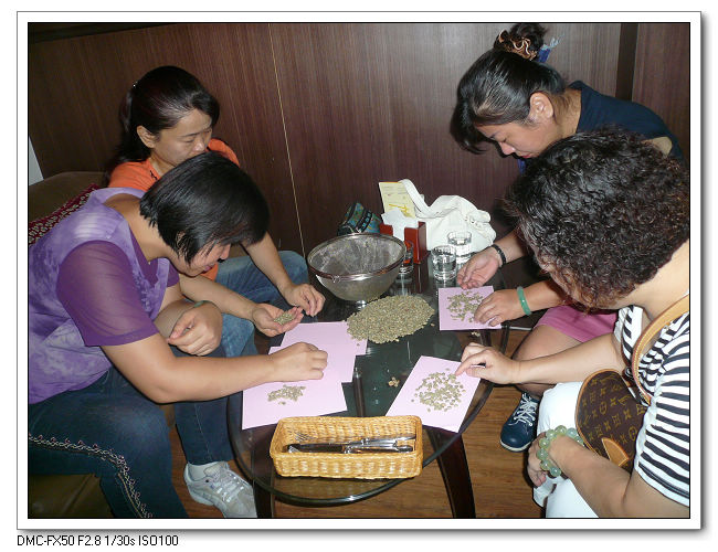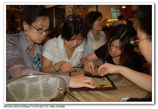 為避為瑕疵豆影響烘焙的品質,大伙都很認真的在飾選。