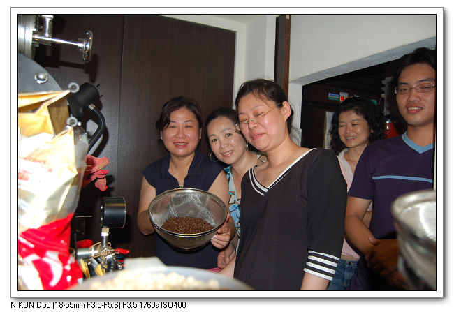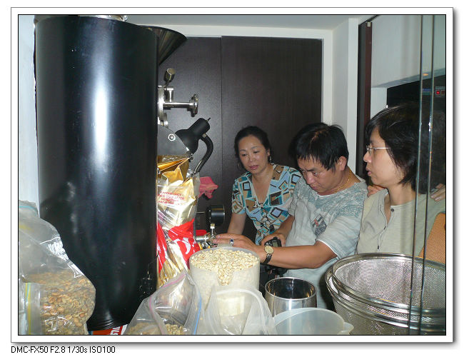 開始烘豆囉,由周大哥在旁指導楊家500烘豆機的操作方法。