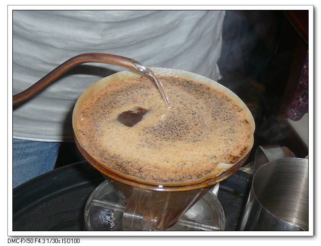 為了維持每次沖煮的品質,請周大哥幫忙用手沖濾泡早上烘好的三批豆子。