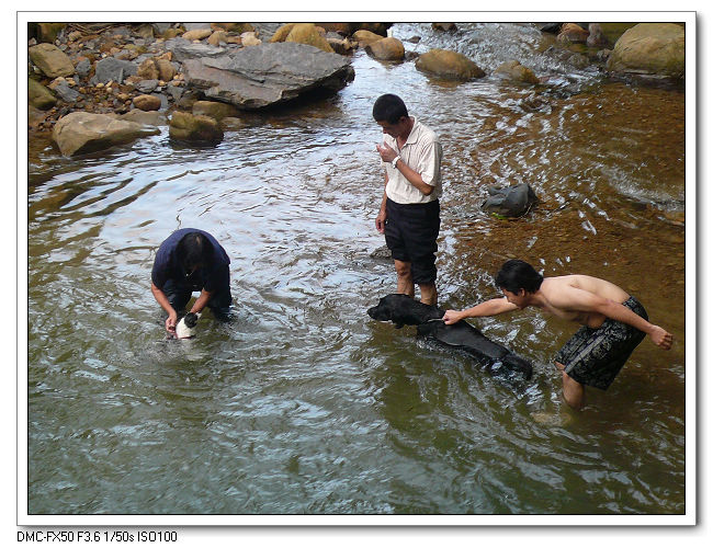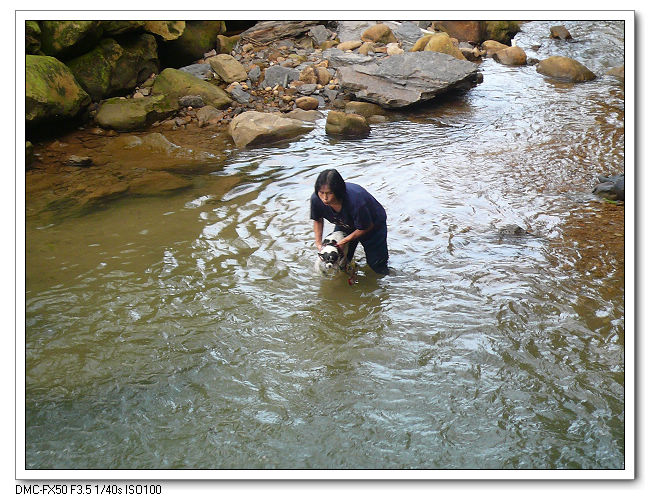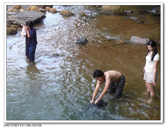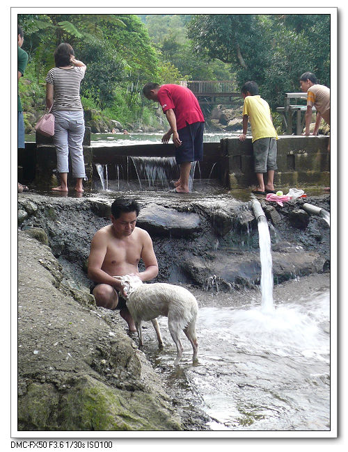 今天很多人也帶著小狗來洗澡沖涼。