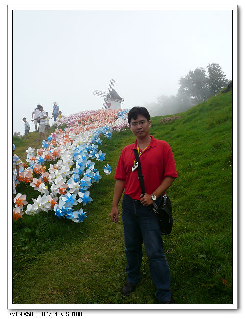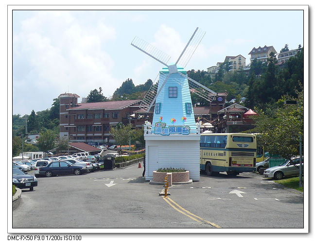 清境農境最近舉辦風車節活動。先在停車場搭乖接駁公車到青青草原。