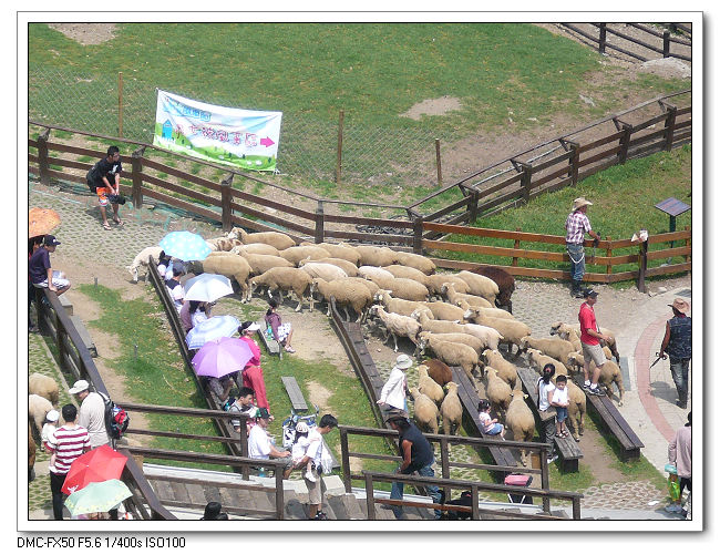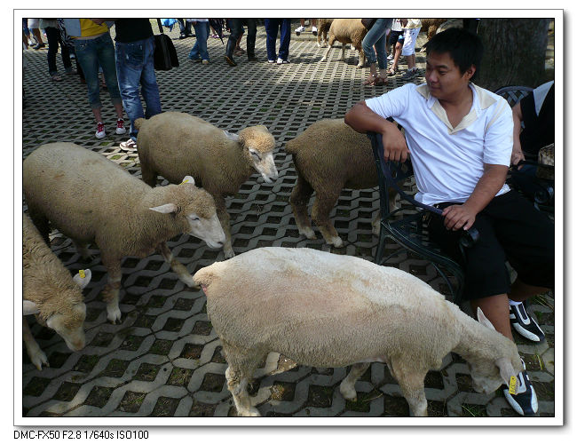 進到青青草原就看的到羊咩咩到處遊走。這頭白羊好像才表演過脫衣秀。