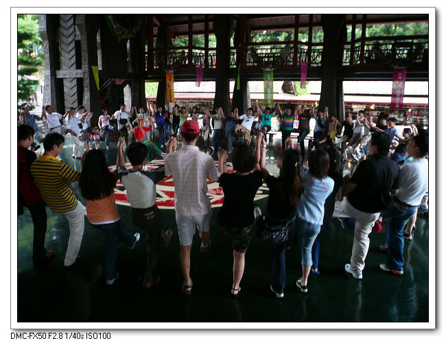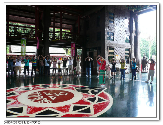 園區特別為遊客示範教學原住民舞蹈,讓大家參與其中有手牽手心連心的感覺。