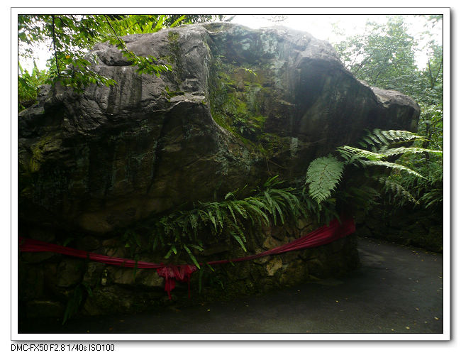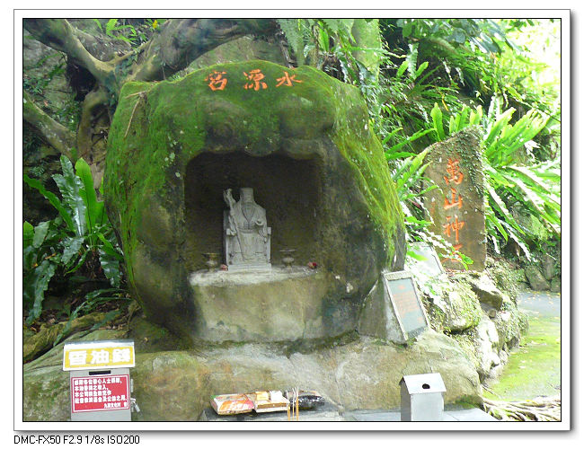 萬山神石,土地公石和前謝副總統東閔所提之『飲水思源』碣,以紀念九族文化村建村創園鑿水源。