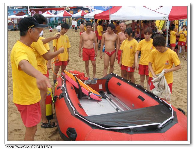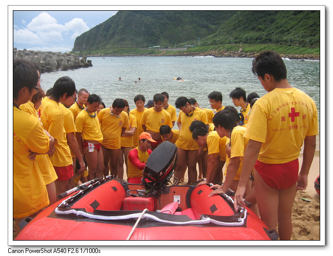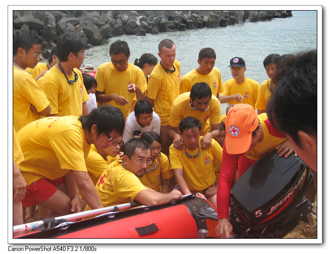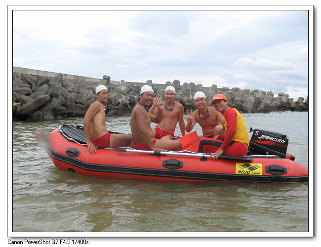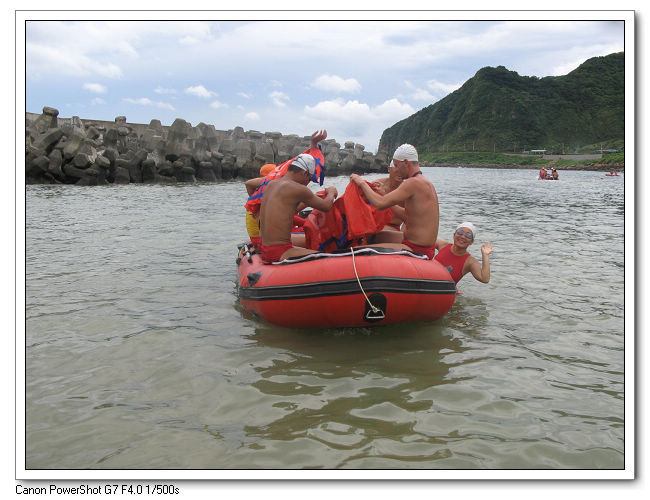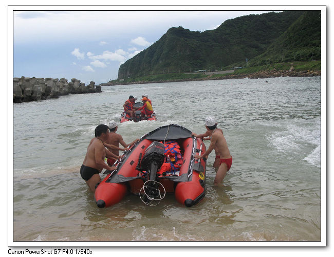裝備下車後,大伙先把救生艇組裝好。
