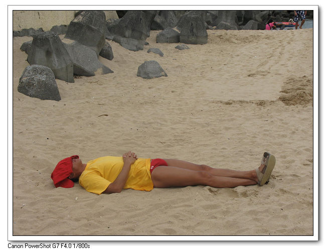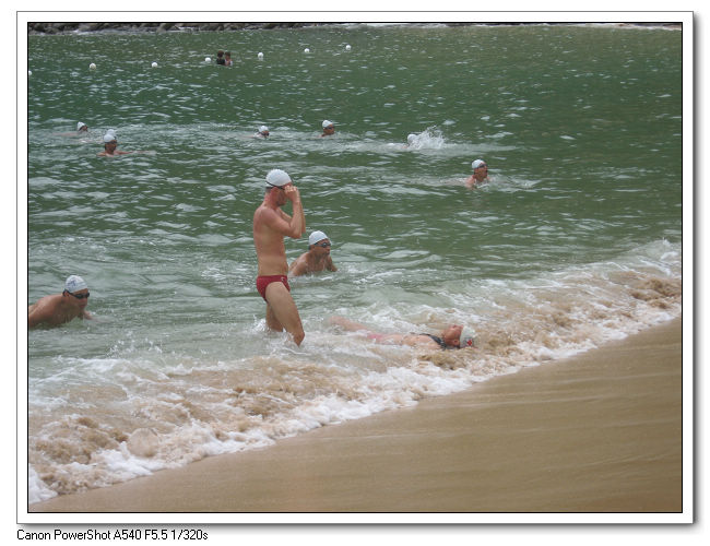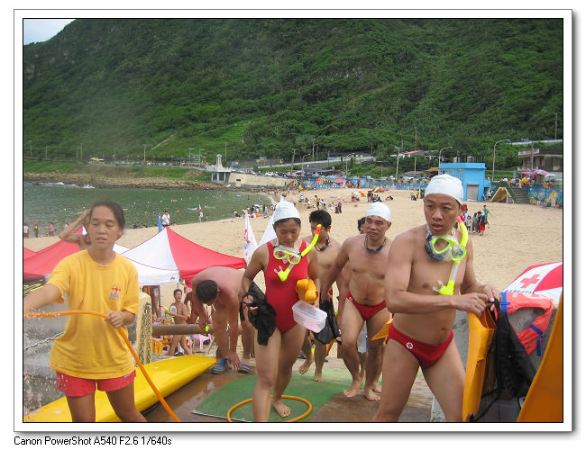 游了90分鐘左右,終於讓大家上岸休息了。