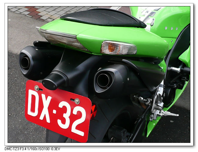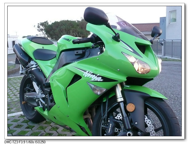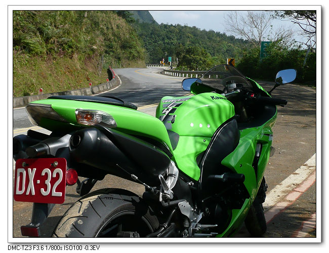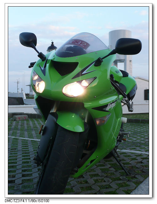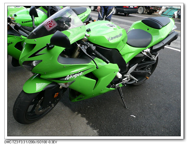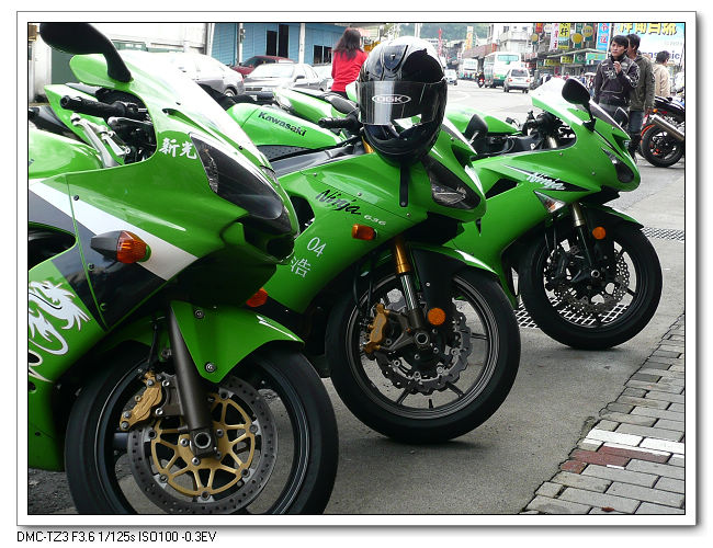 剛好停三台KAWASAKI忍者,ZX-9R、ZX-6R、ZX-10R, 呵~我騎的10R比較大台。