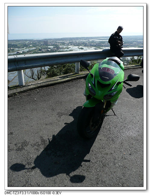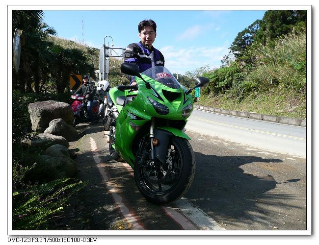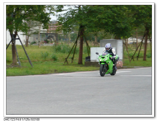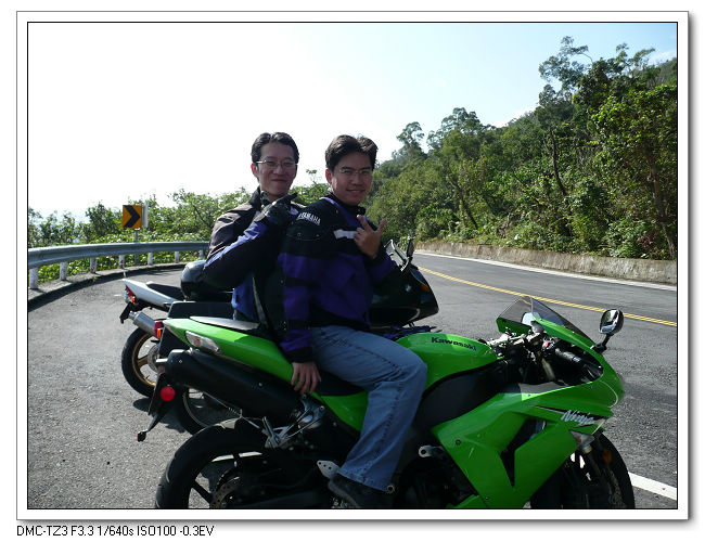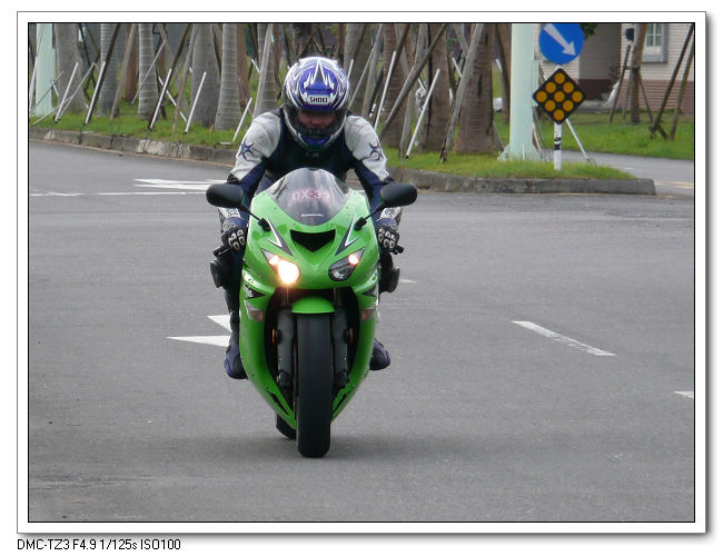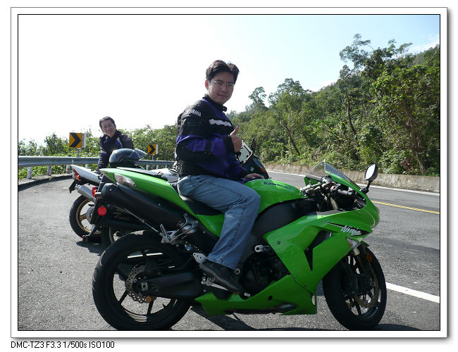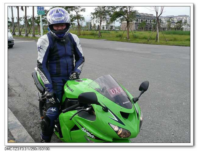 餐後娛樂活動,讓小楊試乘ZX-10R,享受重車的快感。