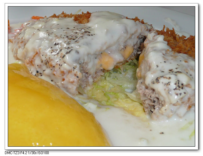 切開炸肉餅,有著濃濃的起司,口水也跟著流出來。