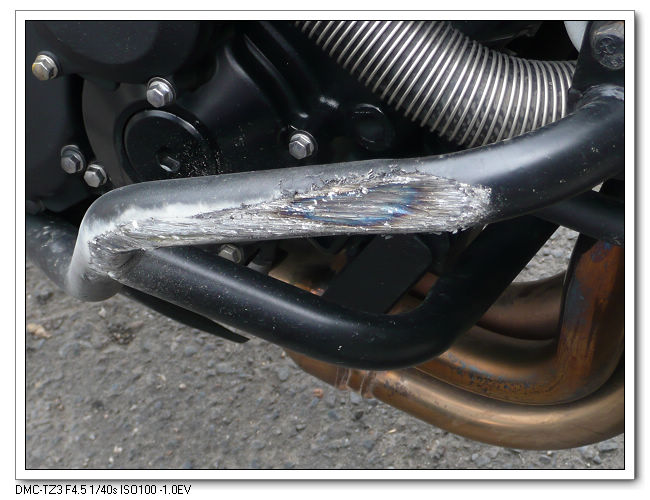 右手臂、膝蓋處有破皮,不過沒大礙。車子倒是傷的不輕。