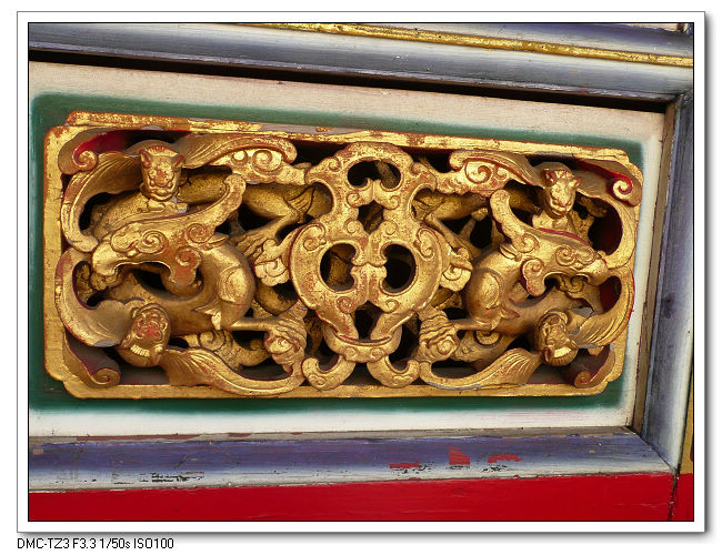 尤其三川殿檐下的龍柱、青獅、石枕、壁堵為精采絕倫石雕的繁紋華飾,及門堵的細木雕刻,著實令人嘆賞。