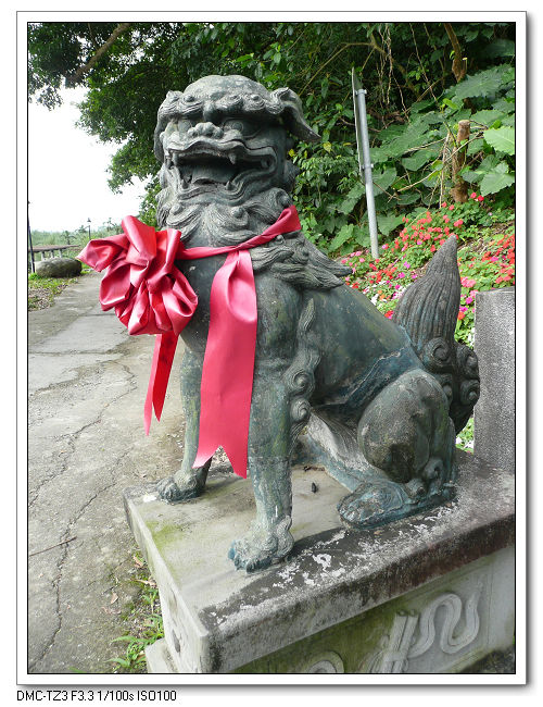 神社傾頹石燈與太陽一起殞落,忠烈的旗幟易變,唯有神駒依舊,看盡募暮色漸漸掩埋了現代。(陳倥1997)