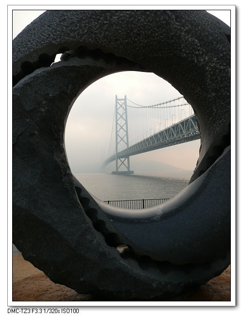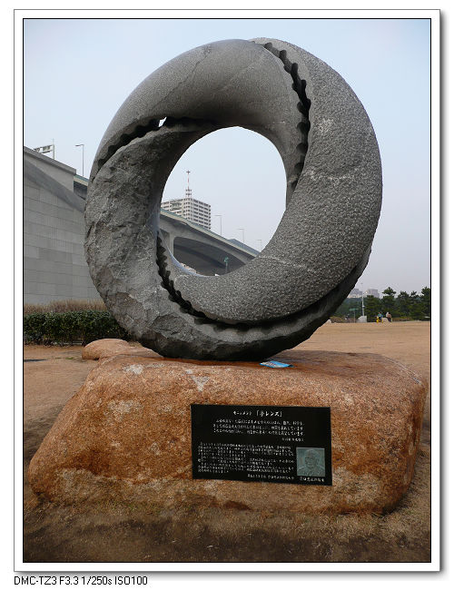 夢之環-這甜甜圈記念碑,似乎是在紀念明石大橋設計者原口忠次郎博士。