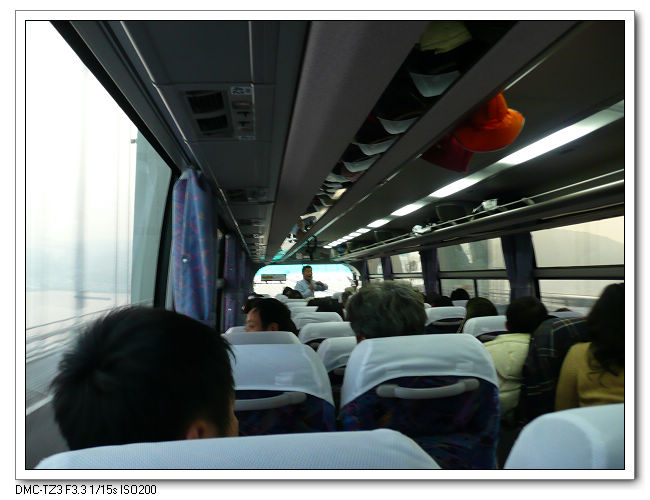 導遊在車上介紹日本的風土民情,偶爾介紹免稅物品。