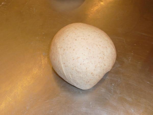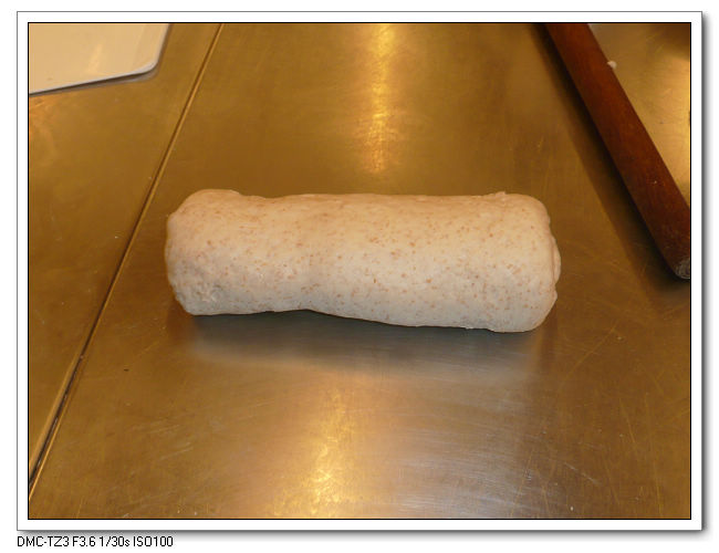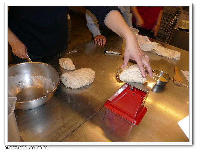 全麥麵團攪拌好,發酵一段時間後開始分塊,一人一份。
