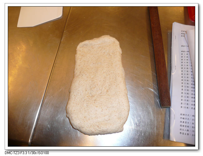 捍麵團,除了桿出型狀外,也把裡面的空氣捍出來。