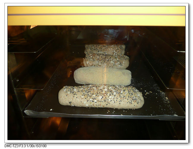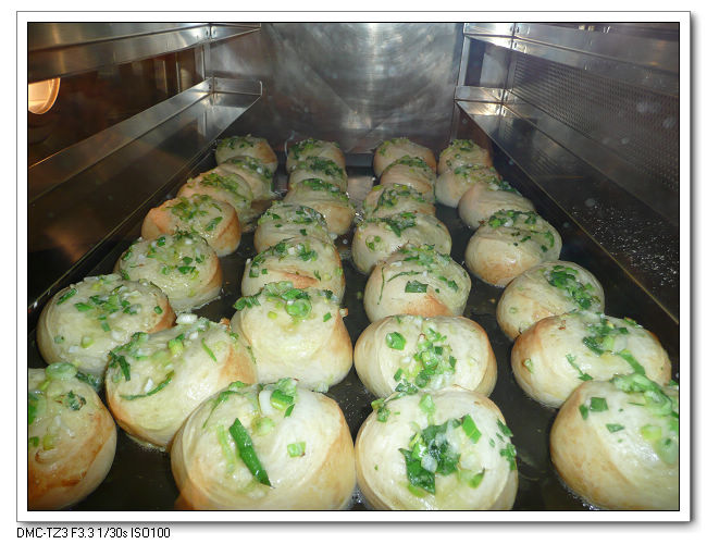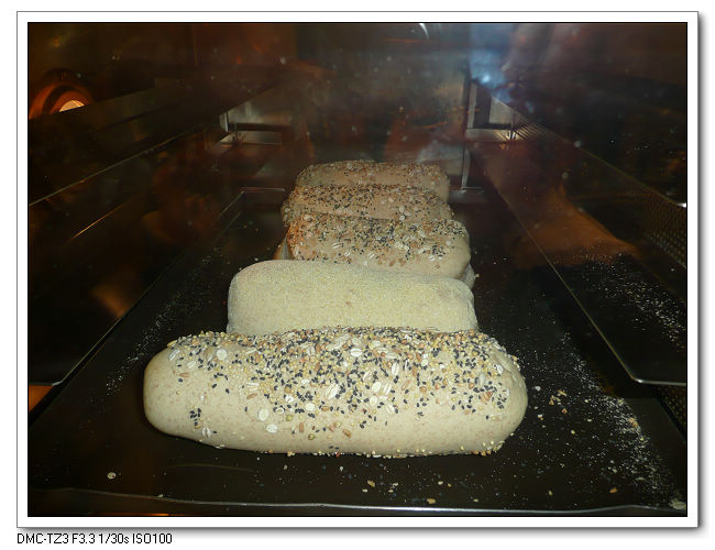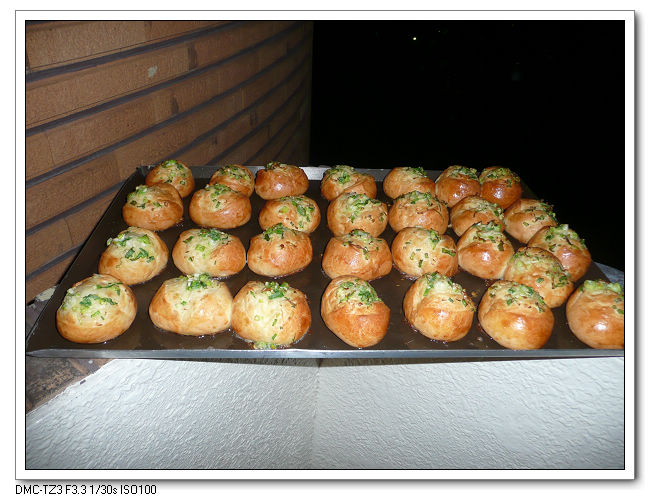 麵包烤好出爐了,中間是我的,怎麼看都覺的是比較好看滴~呵