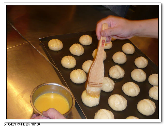接著抹上一層蛋衣,烤出來會增加色澤。