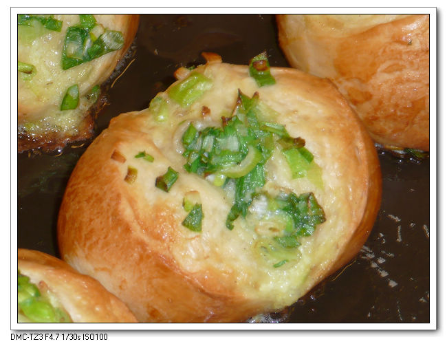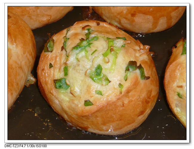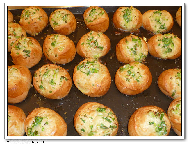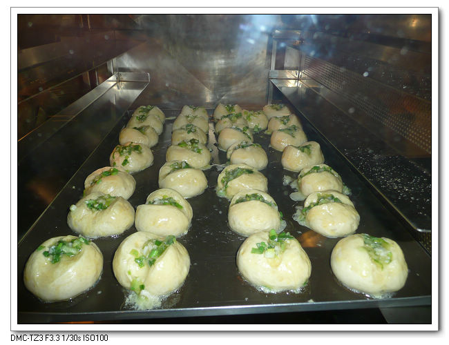 因為蔥餡有放豬油,愈烤就愈有濃郁蔥油香味。