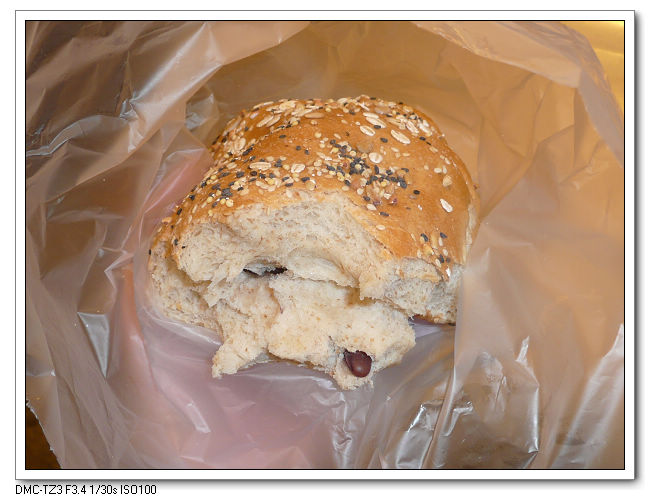 等待的時候,熱騰騰的全麥紅豆麵包一不小心就被我克掉一半了。