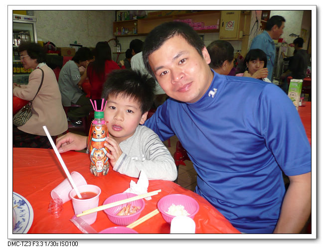 小朋友顧著玩飲料瓶,似乎對海鮮沒興趣。