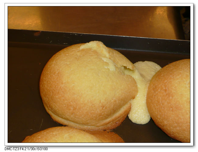 別組的起司蛋糕出爐了,因為起司不當保存放在冷凍,烤出來的成品比較不上相。