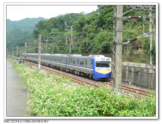 走到三貂運動公園旁,離鐵軌很近,可以近距離觀看火車呼嘯而過。