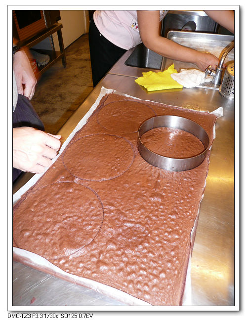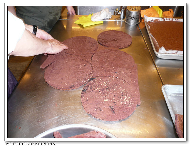 用模具將蛋糕裁出所要的圓型。