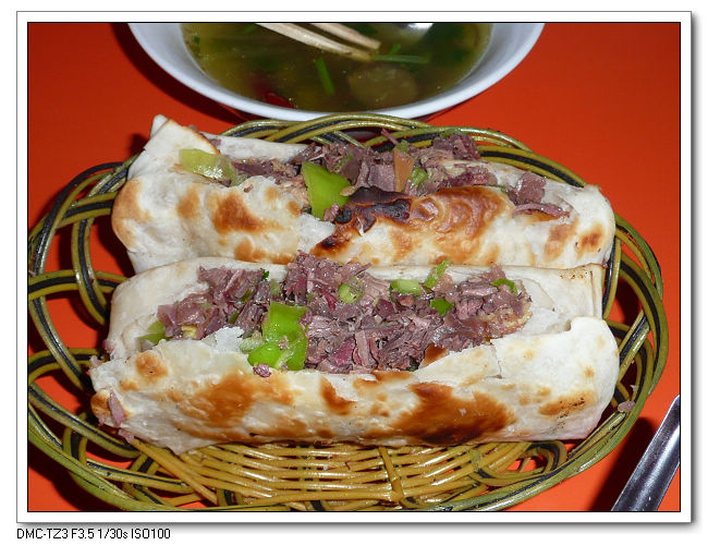 驢肉火燒,一個4元,份量十足。
