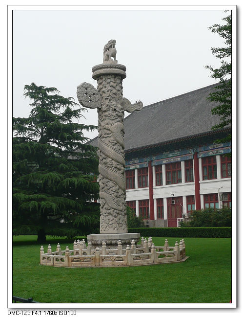 從西門走進北大,最先映入眼簾的,是兩座聳立在草地上的華表。